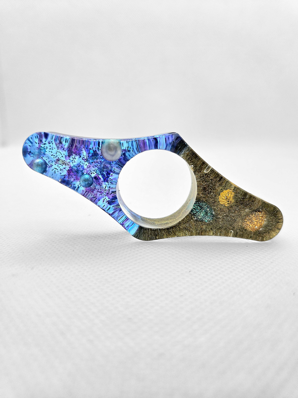- Une bague de lecture Bleue holographique, avec sable, perle et bijoux coquillages .