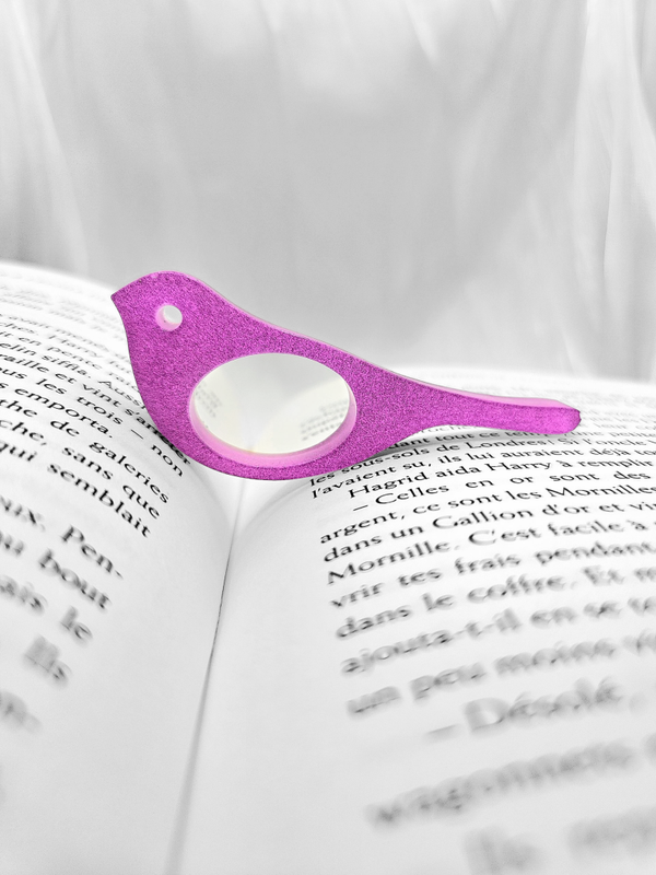 Une bague de lecture en forme d'oiseau rose entièrement phosphorescente.