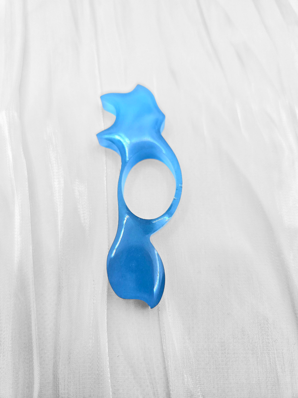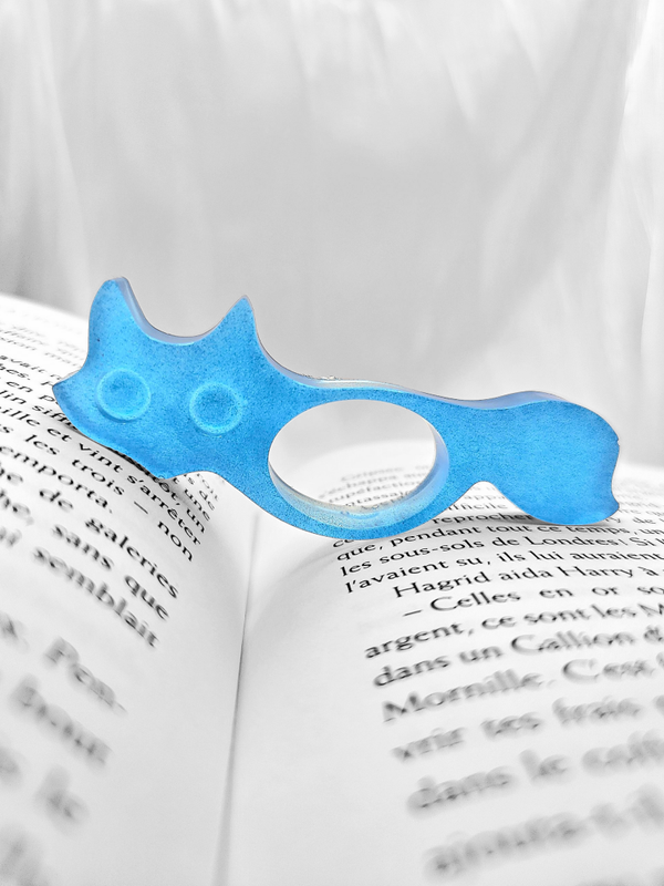 Une bague de lecture en forme de renard bleu entièrement phosphorescente.