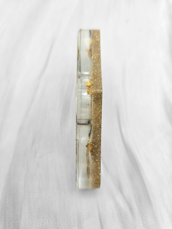 -Marque-page: Fond blanc à paillette doré, feuille d'or.