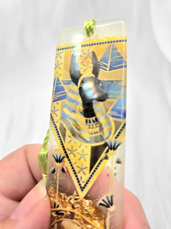 Motif: Bustes d'Anubis et d'Horus avec leurs coiffes, fleurs de papyrus et Oeil d'Horus.