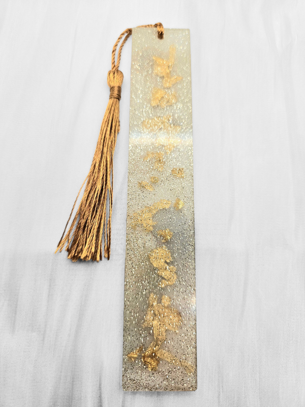 -Marque-page: Fond blanc à paillette doré, feuille d'or.