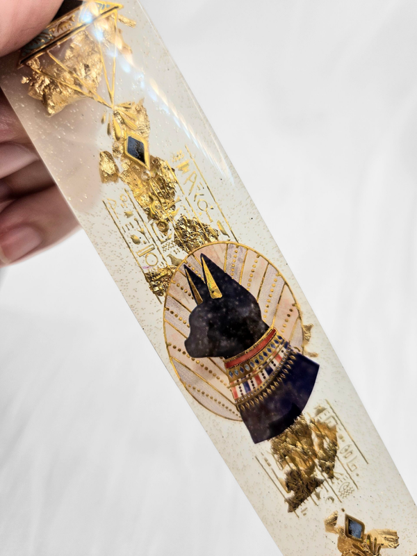 Motif: médaillon Chat sacré, encensoirs et Hiéroglyphes.